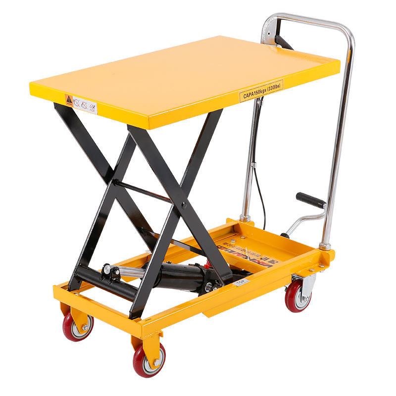 1000 किलोग्राम लोड कैंची ट्रॉली लिफ्ट मोबाइल मैनुअल हाइड्रोलिक लिफ्ट प्लेटफॉर्म